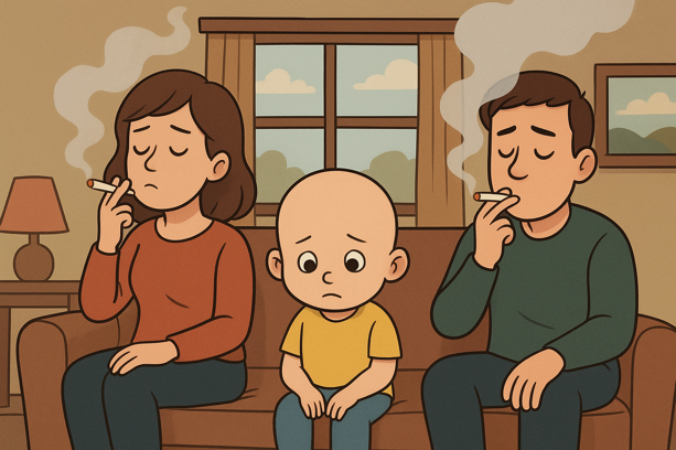 Figura 2. Tabaquismo pasivo como factor de riesgo para el desarrollo de cáncer infantil. Imagen generada con inteligencia artificial (Open AI), elaboración propia.